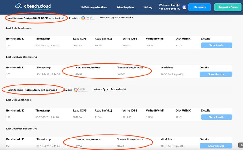 Dit is precies waarom ik dbench.cloud heb gebouwd: om self‑managed, DBaaS én verschillende architecturen onder identieke omstandigheden te benchmarken, zodat je aan management niet alleen “gevoel”, maar harde cijfers kunt laten zien.